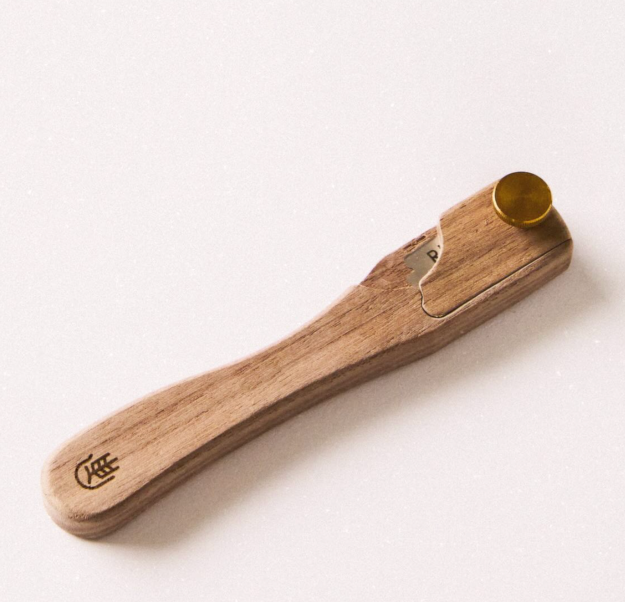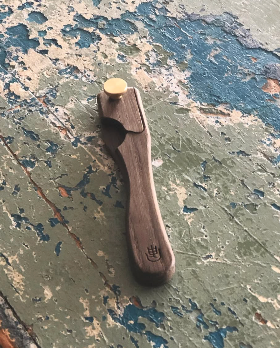 Smoked sustainable wood, stainless steel screw, razor blade