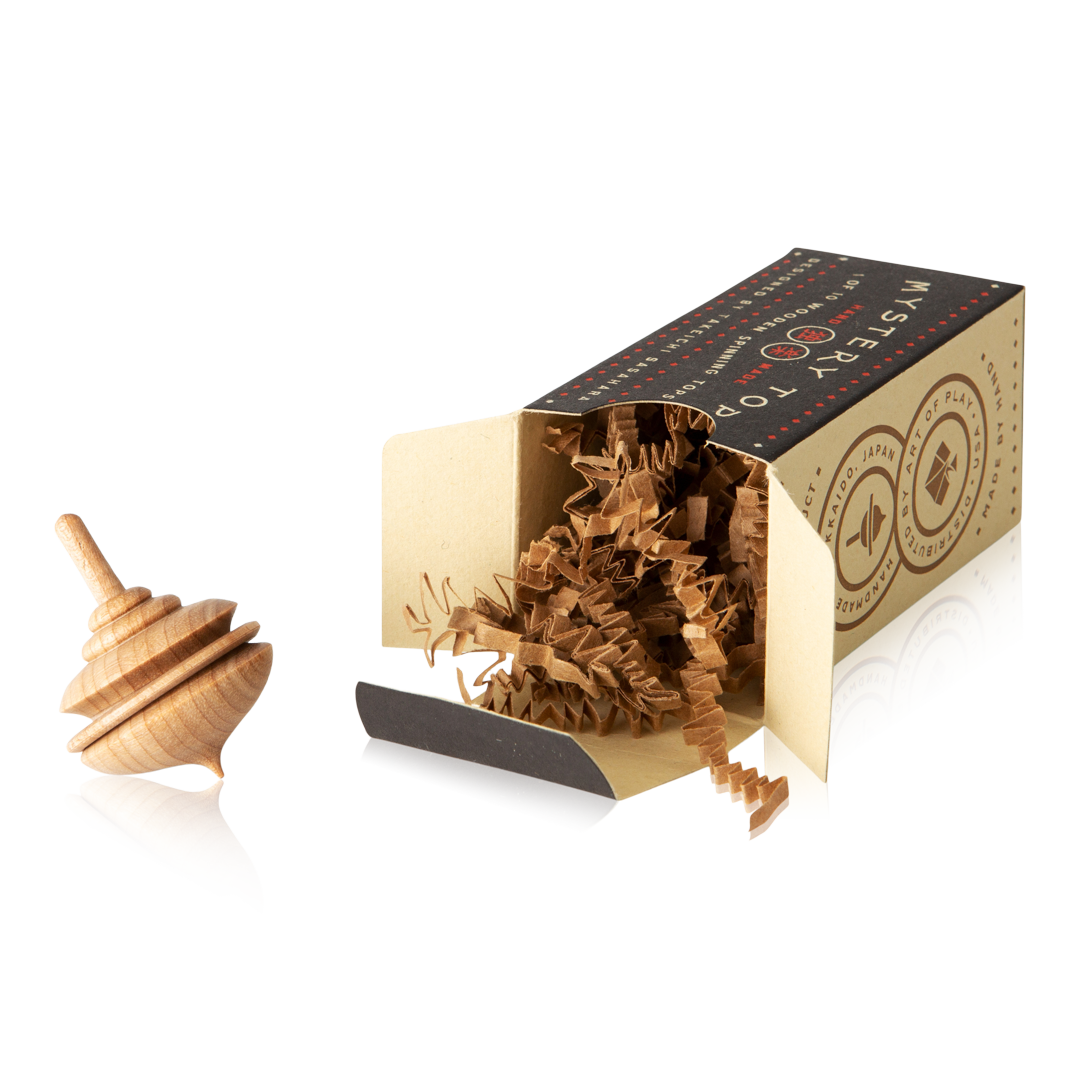 The gravity-defying ballet of spinning tops has fascinated curious minds since ancient times. This variety of wooden tops honours that rich history with styles ranging from Art Nouveau to Bauhaus to Modern. We wanted to share these lovely little tops with a bit of a twist... Each of the boxes is packed "blind" which means that even we don't know which of the ten different varieties is inside which box. Enjoy the surprise—you won't be disappointed. Designed by Takeichi Sasahara and hand-turned from a variety of indigenous woods on the Japanese Island of Hokkaido.