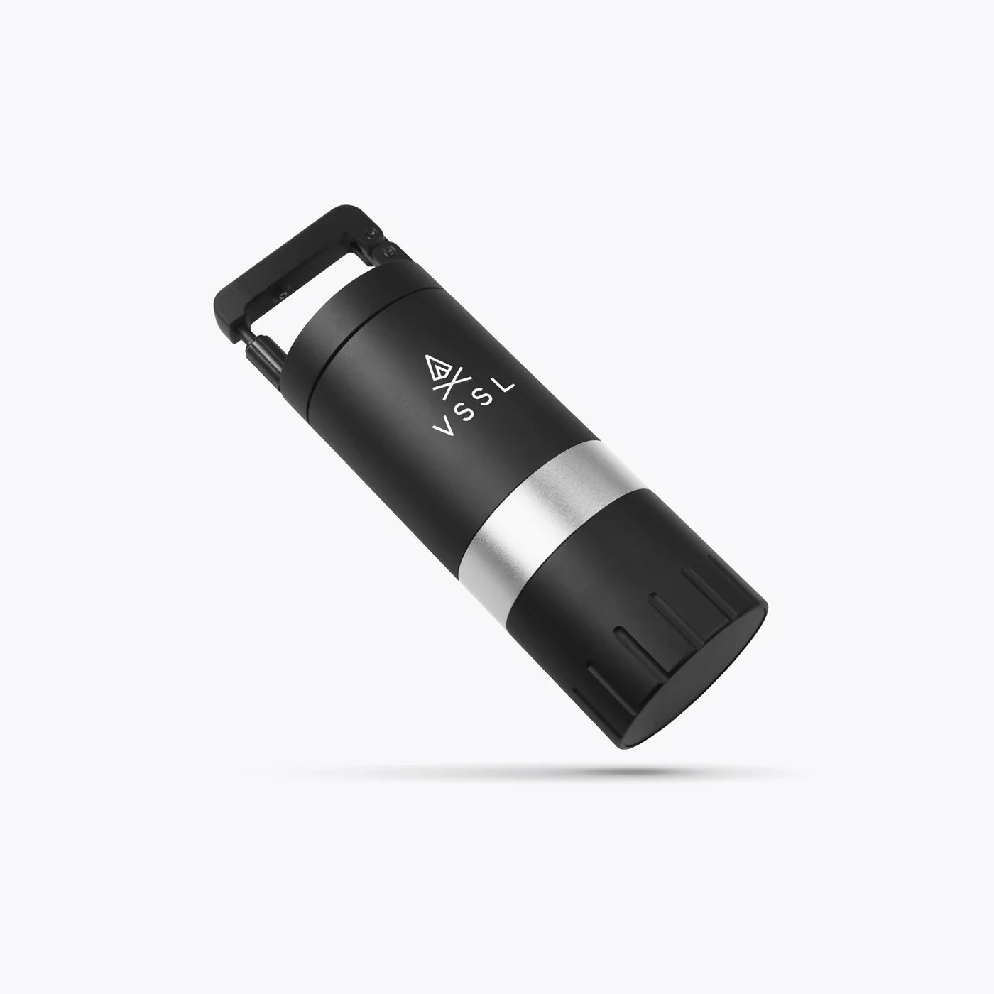 The grind handle extends and retracts for double duty as a locking carabiner handle. The grinder knob threads to attach within the catch when not in use, and with the magnetic integration sits securly on the extended grind handle.